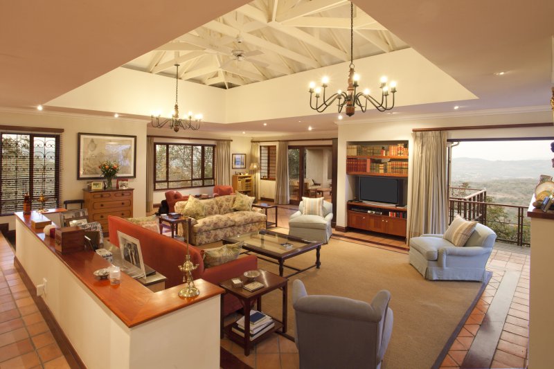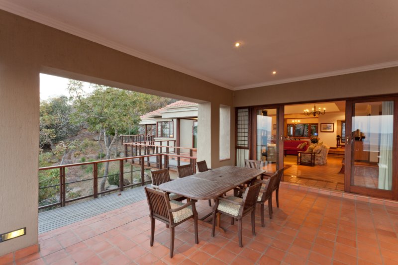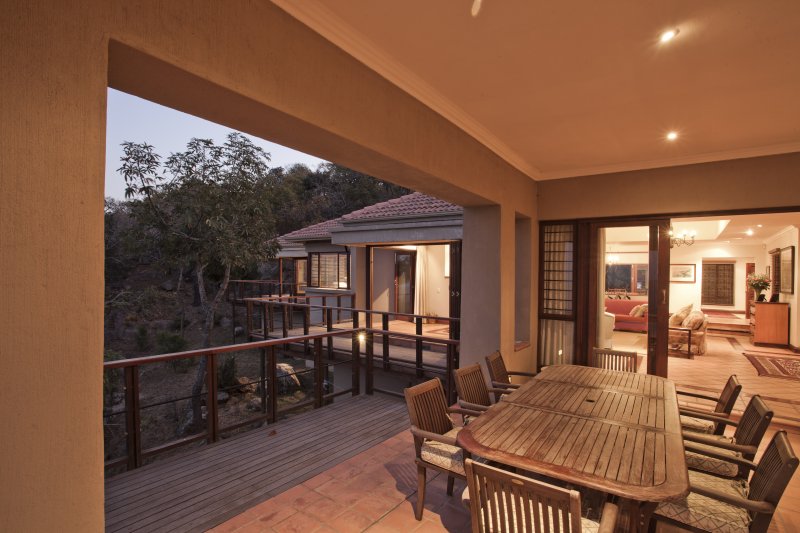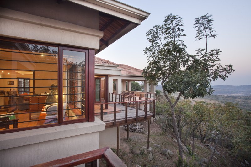 The residence is clustered around a granite rock outcrop and is sensitively placed amongst established trees. The site commands spectacular views of the Lowveld and the house opens up to this landscape.